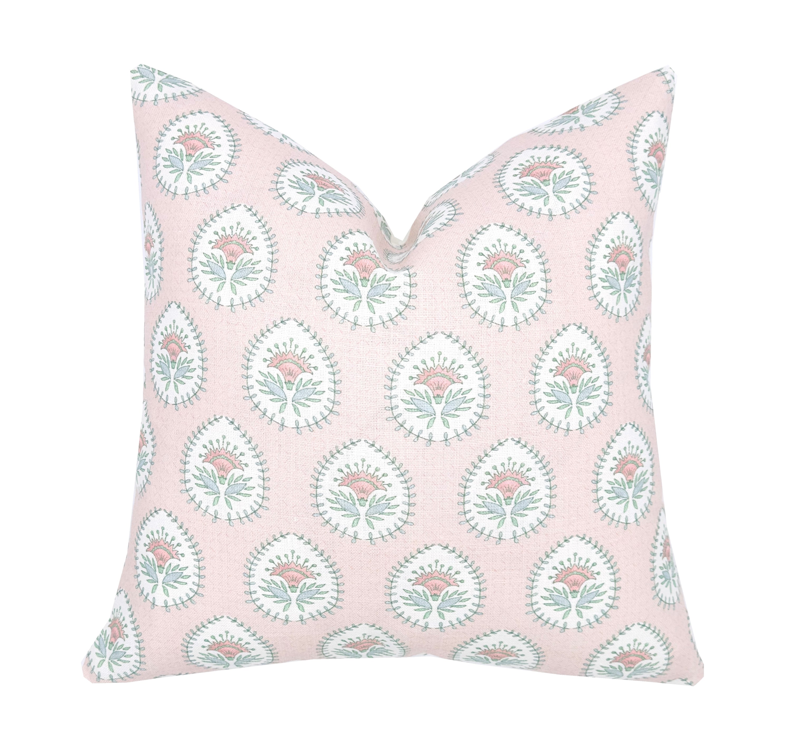 Daphne Pink Linen Pillow Cover | Soft Pink and Blue | Designer | High End | 1 or 2 Sided