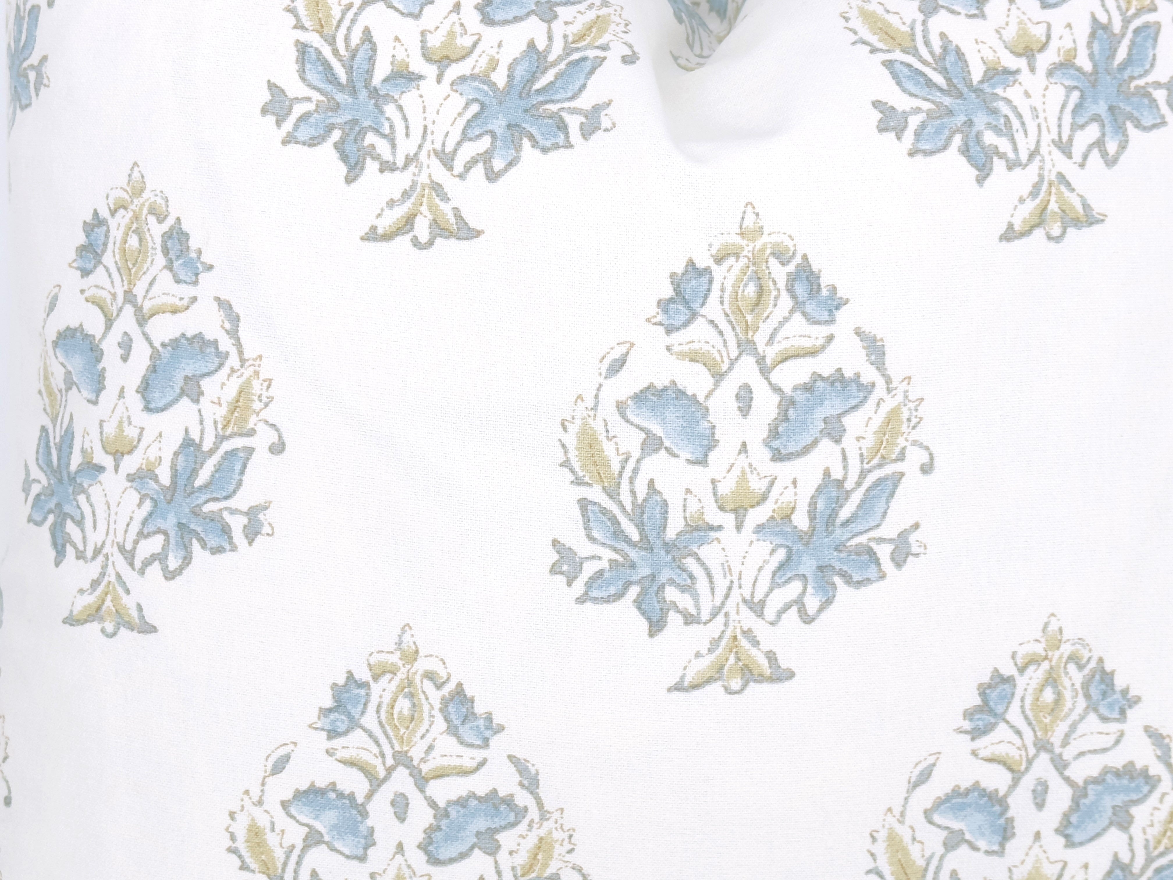 Maddie Blue Floral Block Print Pillow Cover | Same Fabric Both Sides